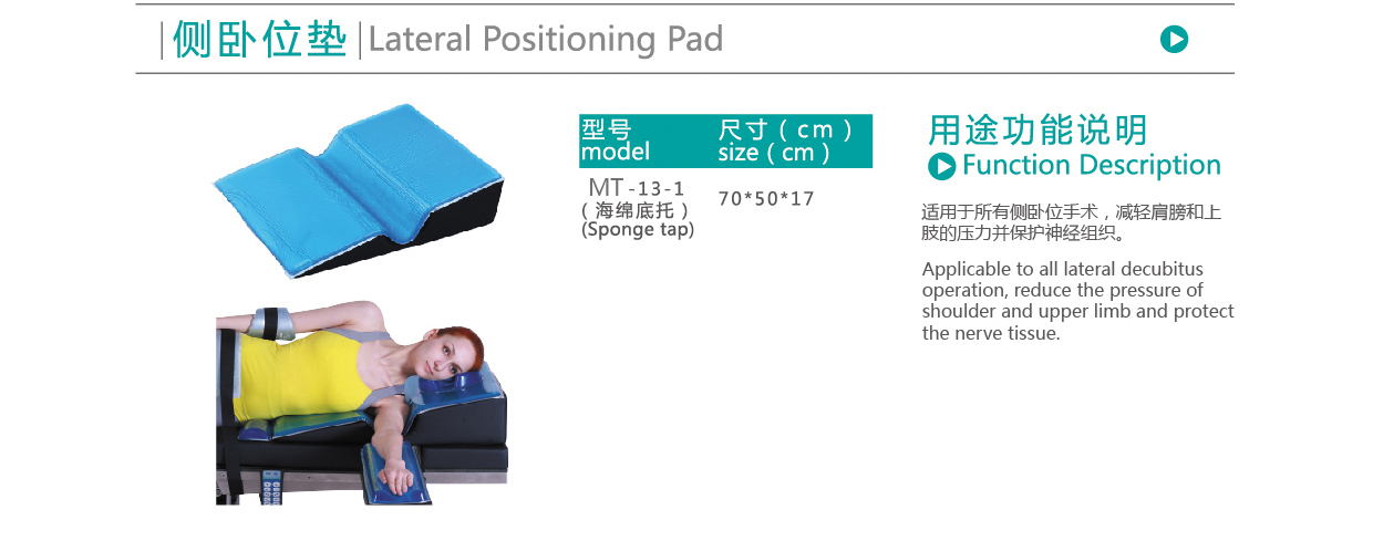 【產品用途】適用于所有側臥位手術,減輕肩膀和上肢的壓力并保護神經組織